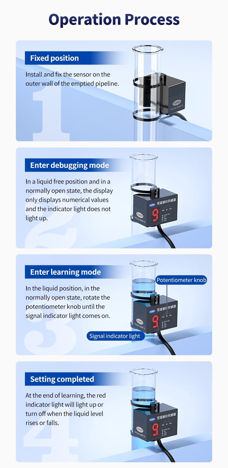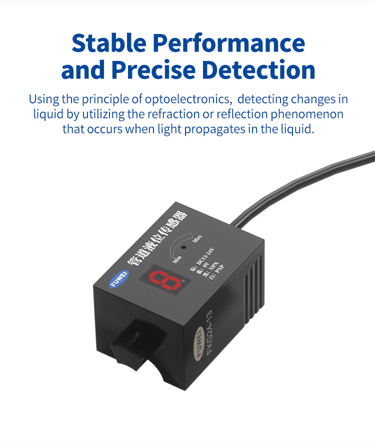 Sensor de nível do tubo do capacitor de detecção de baixo nível FKG24-13NP-S Princípio capacitivo, não facilmente afetado pelo material do tubo