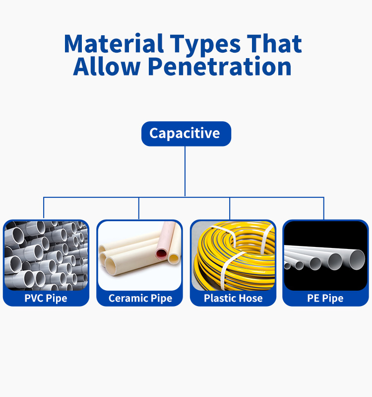 Princípio capacitivo, não facilmente afetado pelo material do tubo