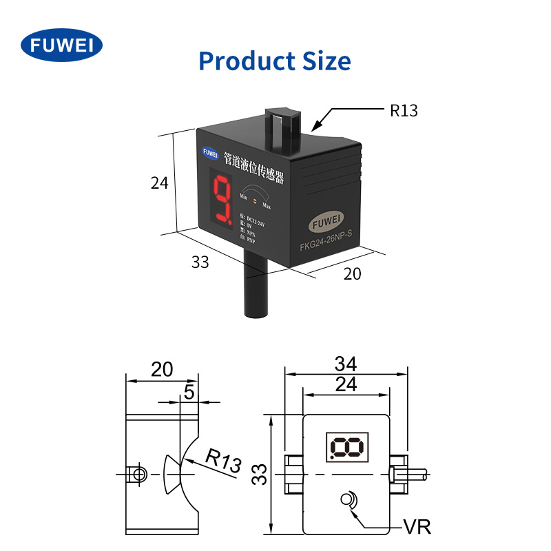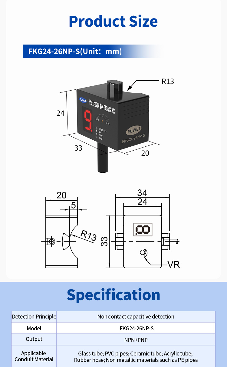 FKG24-26NP Série Pipe Líquido Nível de líquido Princípio capacitivo, não facilmente afetado pelo material do tubo