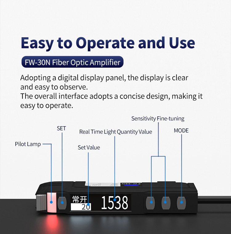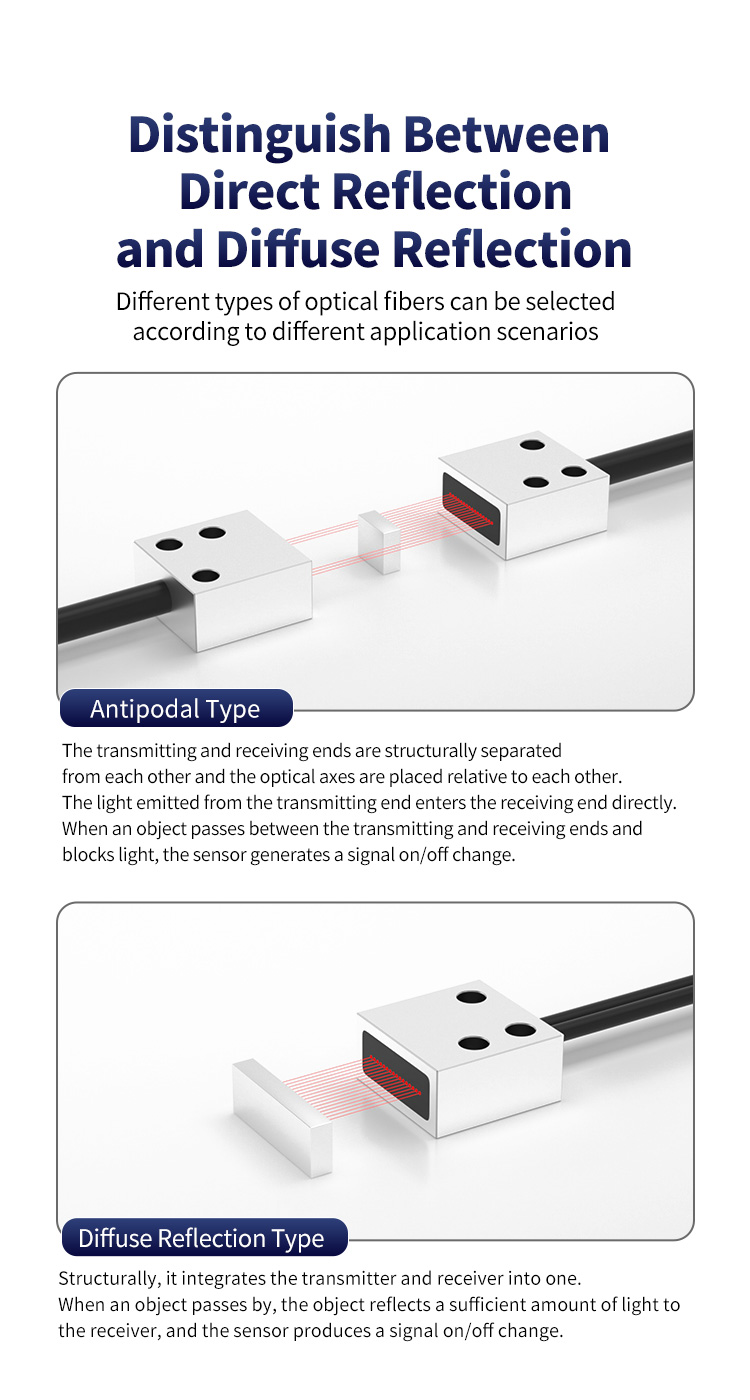 Sensor de fibra óptica: Detecção de alta precisão para contagem e embalagem precisas.