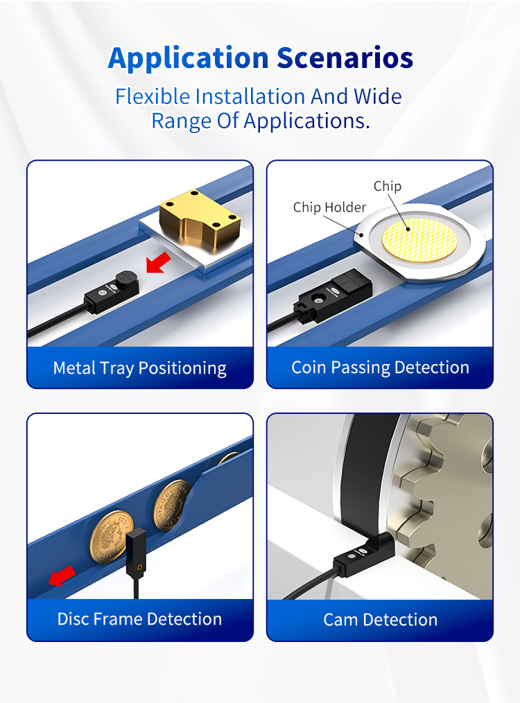 Na Fuwel Electronics, projetamos soluções para esses desafios exatos. Apresentamos com orgulho o Sensor de Proximidade Indutivo FSNS10D-03N – um componente projetado não apenas para detectar, mas para resolver. É a personificação da velocidade de resposta rápida, estabilidade inabalável e proteção IP67 robusta, criada para oferecer desempenho impecável nas aplicações mais exigentes. Desde o posicionamento da bandeja de metal e detecção da estrutura do disco até a passagem de moedas e detecção de came, o FSNS10D-03N garante precisão exata, garantindo que suas operações sejam executadas de maneira mais suave, rápida e inteligente.